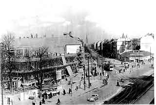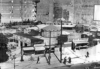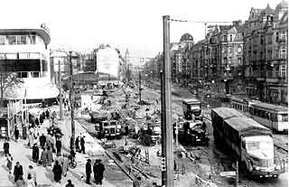 Er ist eine Erfindung der Nachkriegszeit. Die Einmündung der Kaiserallee (1950 anläßlich der Einweihung des Bundeshauses in Bundesallee umbenannt) in den Straßenzug Rheinstraße - Schloßstraße, der ja unter verschiedenen Namen Berlin von der Glienicker Brücke bis zum Potsdamer Platz als ein Teil der Bundesstraße 1 in Südwest-Nordost-Richtung durchzieht und der auch den amerikanischen Bomberverbänden als Wegweiser in die Berliner Innenstadt diente - dieses Triangel wurde früher das "Rheineck" genannt. Die Apotheke in der Rheinstraße Ecke Schöneberger Straße heißt noch heute "Rheineck-Apotheke". Ähnlich wie der Ernst-Reuter-Platz - früher das "Knie" - seinen Namen erhielt, als man Plätze suchte, um die neuen, demokratisch gewählten Politiker zu ehren, wurde das ab 1953 in mehreren Phasen umgebaute Rheineck zum Walther-Schreiber-Platz, benannt nach dem Ernst Reuter im Amt folgenden Regierenden Bürgermeister. Er war nie ein richtiger Platz und ist es heute erst recht nicht: kein Ruhepunkt, kein Verweilort, auf dem man "Platz nehmen" kann. Aber wer wollte schon auf dem Walther-Schreiber-Platz verweilen? Einzig die Säule mit den Schildern, die seinen Namen verkünden, steht auf einem kleinen Inselchen mitten im Verkehrsgewühl, auf dem höchstens einige Tauben platznehmen können. Die Entfernung der Straßenbahn mit ihren Schienenanlagen aus dem West-Berliner Straßenverkehr und die damit einhergehende Verbreiterung der Fahrdämme schuf mehr Platz für den Bus- und Autoverkehr und weniger für die Fußgänger. Es war die Zeit der "autogerechten" Stadtplanung. Die dreieckige Mittelinsel an der Rheinstraße Ecke Kaiserallee mit ihrem Zeitungskiosk war ein Ruhepol für Fußgänger auf ihrem umständlichen Weg in die Schloßstraße. (1945, kurz nach dem Einmarsch der Roten Armee, reckte von hier aus eine sog. Stalinorgel ihre Rohre drohend gegen die Stadtmitte, kam aber zum Glück nicht zum Einsatz.) Heute befindet sich ganz in der Nähe, vor Ebbinghaus, der Eingang in die U-Bahnstation Walther-Schreiber-Platz, eine der Stationen der in den 70er Jahren gebauten U-Bahnlinie 9, die die lange geplante Verbindung zwischen Steglitz und Wedding herstellt. Wenn man von dort aus in die Schloßstraße gelangen will, so war und ist das eine aufwändige Angelegenheit. Ob der geplante erneute Umbau der Schloßstraße mit dem Verzicht auf die Mittelinsel (!) vor dem Forum Steglitz daran etwas ändern wird, kann zumindest bezweifelt werden. Warten wir's ab! Der im Krieg zerstörte Häuserblock auf dem heutigen Hertiegelände beherbergte in großen, teuren Wohnungen mit Arzt- und Anwaltspraxen auch viele jüdische Bewohner, die ab 1937 ihre Wohnungen zwangsweise verlassen mussten, weil große Wohnungen für sog. Abrissmieter benötigt wurden, deren Häuser im Zuge der geplanten "Neugestaltung der Hauptstadt" abgerissen wurden. Die jüdischen Mieter wurden zu-nächst in Häuser jüdischer Eigentümer umgesetzt ("geschachtet" hieß Alfred Speers Spezialausdruck dafür); als dieser "Abriss" im Krieg auf andere Weise als vorgesehen geschah, wurde jüdischer Wohnraum auch als "Kastrophenwohnungen" gebraucht. Ab 1941 setzte dann die "unmittelbare Vertreibung der jüdischen Bevölkerung" ein, die im günstigsten Fall im Exil, im schlimmsten im KZ endete. Im Erdgeschoss dieser Häuser befanden sich viele kleine Läden. Ich erinnere mich an das Seifengeschäft Losch, an ein Milch- und ein Papierwarengeschäft, eine Eisdiele, und natürlich an das Thalia-Tageskino, "Talja" oder "Flohkiste" genannt, eines der acht Lichtspielhäuser zwischen Rathaus Steglitz und Rathaus Friedenau, in das die Kinder sonntags für 30 bis 60 Pfennige in die Jugendvorstellung gingen und in dem in der ersten Nachkriegszeit oft genug der Film abrupt mit dem Beginn einer plötzlichen Stromsperre endete. Ein kleiner Rummel schlug vorübergehend seine Zelte auf dem Gelände auf, bis er und all diese Läden bzw. das, was von ihnen übriggeblieben war, 1953 mit dem Bau des neuen Warenhauses verschwanden. Auch von den alten Geschäften auf der östlichen Seite des Walther-Schreiber-Platzes besteht nur noch die Rheineck-Apotheke mit ihrer schönen Jugendstilinneneinrichtung; die meisten haben sich erst nach dem Krieg dort angesiedelt: das gediegene kleine Lederwarengeschäft etwa, eine luxuriöse Tabakwarenhandlung oder das Pfaff-Nähmaschinengeschäft, in dem die Zeit stillzustehen scheint. Sie klagen über die schäbige Nachbarschaft, kontinuierliche Mieterhöhungen und Geschäftsrückgang seit der Euro-Einführung. Radio-Rading hat seine Pforten geschlossen, und dem Nachmieter, einem immerhin gehobenen Schnäppchenladen ("Jeder Preis verhandelbar!") folgte ein totaler Abstieg mit einem echten Ramschladen. Der auf Friedenauer Gemarkung liegende Walther-Schreiber-Platz ist sozusagen der Abschluss der "Friedenauer Einkaufsmeile" - oder das "Tor zur Schloßstraße". War in den Jahren vor dem Krieg die Rheinstraße mit ihren Traditionsgeschäften wie Radio-Rading, Friedebold, Papier-Graf, Café Wanke, der Wohltat'schen Buchhandlung, um nur einige zu nennen, und auch dem Billigwarenhaus Epa (später Kepa) die lebhaftere Einkaufstraße, während die Schloßstraße eher etwas verschlafen wirkte mit ihrer ewigen Baugrube, in die erst 1955 Wertheim gebaut wurde (wir Kinder schmulten oft neugierig durch den Jahrzehnte stehenden Bauzaun), so hat sich das seit den fünfziger/sechziger Jahren umgekehrt. Leineweber baute sein großes Geschäftshaus, die Warenhäuser entstanden, später das Forum Steglitz, und all das zog natürlich die Menschen und vor allem die Käufermassen an. Man könnte heute von einer "verkaufsfördernden" Stadtplanung sprechen. Dieser Puffer zwischen den beiden Einkaufsmeilen soll nun auch entsprechend repräsentativ gestaltet werden. Ein inzwischen überholter Entwurf zeigt auf dem Gelände des im "Plastikstil" der damaligen Zeit gestalteten Warenhauses Held (später Hertie) einen nahezu majestätischen Bau, der sich mi