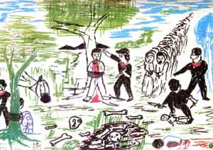Kinder-Kriegszeichnungen, die in der Volkshochschule Tempelhof-Schöneberg
