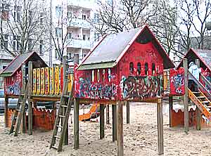 Spielgerüsten, Rutschen, Häuschen und Wänden meistens alles andere als