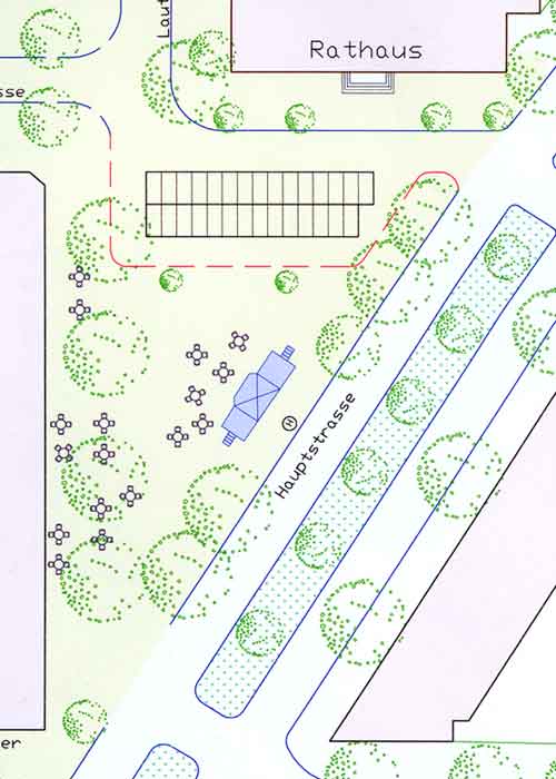 Vergrößerung des Platzes, mit einer Änderung der Verkehrsführung, einer
