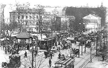 Die Umbau- und Erweiterungsmaßnahmen müssten unter Berücksichtigung des Denkmalschutzes geschehen. Die gegenwärtig durch Poller vor Überfahrung geschützten Oberlichter der Anlage sind statisch so ausgelegt, dass sie Sitzgruppen eines Restaurationsbetriebes aufnehmen könnten. Die Nutzung der platzseitigen Fläche vor dem Pavillion - gleichgültig ob saisonal oder ganzjährig - ermöglicht eine bessere Aufstellung der Marktstände und der immer zahlreicheren Verkaufsmobile während des Marktbetriebes. Durch eine geschickte Anordnung der Stände könnte hier eine Art freies Forum ausgespart werden, um das sich die Stände gruppieren sollten. Diese Überlegungen wären aber gemeinsam mit den Marktleuten zu erarbeiten. Auch in der marktfreien Zeit wäre dieses Forum attraktiv, weil die Pkw, nicht wie gegenwärtig direkt vor den Oberlichtern parken könnten, sondern weiter nördlich an der Niedstraße. Dieses Konzept spiegelt den gegenwärtigen Stand der Diskussion. Anregungen und Stellungnahmen seitens der Friedenauer Bürgerschaft und aller, die sich herausgefordert und angesprochen fühlen, sind weiterhin willkommen. Erst wenn ein tragfähiges und kostenmäßig erfasstes Projekt vorliegt, können wir gemeinsam mit Förderern aus Politik und Wirtschaft an die reale Umsetzung denken. Bis dahin werden wir durch vom Gemeinsinn geprägte Aktionen, wie sie die Renovierung des Rathauses, die Pflanzung der "Bürgerlinde" oder die Bemalung von Bewag-Kästen darstellen, weiter auf die Aufwertung des Rathausplatzes hinwirken. Peter Lemburg Bild: Der Lauterplatz um 1906 - heute Breslauer Platz, Quelle: Sammlung Hermann Ebling