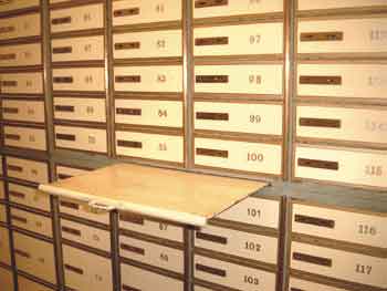Zahlungsanweisungen vom Schalter per Rohrpost an die Kasse versendet wurden.