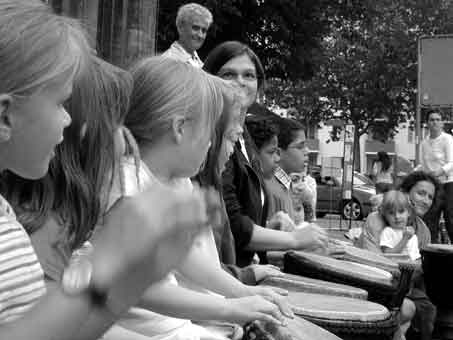 Endlich werden die Tage wieder länger und langsam wird es auch wärmer. Allmählich beginnt die Zeit der Straßencafés und Eisdielen und die Grillsaison wird eröffnet. Am Sonntag, dem 21. Mai, verwandelt sich aber zunächst von 12.00 bis 20.00 Uhr alles um das Rathaus Friedenau in einen großen Festplatz. Als Ausrichter hält hier der Rheinstraßen-Initiative e.V. in Kooperation mit dem Rathaus zahlreiche Überraschungen für Jung und Alt bereit. Rund 55 Verkaufs- und Infostände sorgen auf dem Breslauer Platz für einen lebendigen Treffpunkt Markt, bei dem es besonders um Beratung, Aufklärung und Information gehen soll. Ob Weinhandlung, Kosmetikgeschäft oder Frisör, Buchhandlung, Apotheke oder Wohnaccessoires - die Geschäfte, Vereine und Büros rund um die Rheinstraße stellen hier Produkte und Dienstleistungen vor, kommen miteinander ins Gespräch und knüpfen natürlich auch geschäftliche Kontakte. In einer quasi regionalen Kunstausstellung "Made in Friedenau" präsentieren und verkaufen 20 Künstler im Rathaus ihre Werke. Bereits 2003 hatte die Künstlergruppe während des ersten Friedenau-Tages unter dem Titel "Kunst im Tresor" ihre Bilder mit Erfolg ausgestellt. Wem also der Sinn weniger nach Markttreiben steht, der kann sich etwas abseits vom Trubel an der Kultur im Rathaus erfreuen - an den Bildenden ebenso wie an den Darstellenden Künsten, denn für einiges Theater ist ebenso gesorgt. Unter anderem spielen das Seniorentheater vom Nachbarschaftsheim das Stück "Der blaue Büffel" und das Kleine Theater vom Südwestkorso die Komödie "Schlusschor im Jahr der WM". Ebenso gibt es an diesem Sonntag die Gelegenheit, die Kunst des Schneiderhandwerks und die Goldschmiedekunst in der Ausbildungswerkstatt des Ausbildungs- und Kulturcentrums direkt am Breslauer Platz (1. Stock Niedstr./Ecke Lauterstr.) kennen zu lernen. Im Ladengeschäft können alle Produkte käuflich erworben werden - vom Gold- und Silberschmuck über Kinderkleidung bis zur Damenmode. Unter dem Motto Kinder, Sport und Spiele stehen im Zentrum des Frühlingsreigens die Ge-schicke der jüngsten Stadtteilbewohner - und die sollen im Innenhof des Rathauses im großen Umfange mit Verkehrsgarten, Hüpfburg, Bastelstraße, Märchenerzähler, Ein-Mann-Zirkus, Zauberei und poetischem Schattentheater angeregt werden. Ein Trommelworkshop für Kinder wird mit Sicherheit für lauten Wirbel und irgendwann für richtigen Rhythmus sorgen. Und wem das alles nicht genügt, der kann sich beim Abschlusstanz im Schlesiensaal noch einmal ordentlich herumdrehen lassen. Mit welcher Musik allerdings die Kiezbewohner zwischen 18 und 80 von der Straße geholt und auf eine Tanzfläche gelockt werden sollen, ließen die Veranstalter mit einem kleinen Augenzwinkern im Dunkeln. In vollem Lichte hingegen erscheint Friedenau - nicht nur an einem Tag im Frühling. Mit seinem angenehmen Wohnambiente bietet dieser Stadtteil seinen 44.000 Einwohnern sowohl kulturelle Vielfalt als auch ein reichhaltiges Angebot an Gewerbe und Gastronomie. So sieht es jedenfalls der Verein Rheinstraßen-Initiative. Den Beteiligten - Geschäftsleute und Anwohner der Rheinstraße und Umgebung - geht es um den Erhalt der Lebensqualität im Stadtteil, und dabei ist vor allem mehr Bürgerengagement gefragt. Ein Symbol dieser Verantwortlichkeit ist die "Bürgerlinde". Sie wurde am 21. Mai 2005 zum Auftakt der Neugestaltung des Breslauer Platzes gepflanzt und stellt sinnbildlich das Gegenstück zur „125 Jahre“ alten "Kaisereiche" am anderen Ende der Rheinstraße dar. Ob das kleine Lindenbäumchen dereinst so alt wird wie die Eiche, bleibt ungewiss. Mit Sicherheit können aber auch junge Pflänzchen sehr stark sein, und wenn sich so viele Menschen für die Umsetzung des Friedenau-Tages engagieren, dann kann an einem Tag und mit einem Fest auch das Wir-Gefühl im Stadtteil gestärkt werden. Weitere Informationen zum Programm am und im Rathaus Friedenau unter www.friedenautag.de Simone Tippach-Schneider Mai 2006 Stadtteilzeitung < Inhaltsverzeichnis |