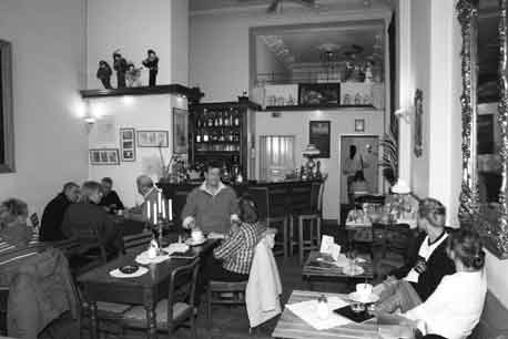 Verhältnisse! Hier hat Axel Redetzky vor sieben Jahren eröffnet. In der Woche von 10 bis 20 Uhr, am Samstag bis 18 Uhr, empfängt er seine Gäste zu Frühstück, kleinen Speisen sowie Kaffee und Kuchen. Es gibt ein paar Spirituosen und kein Rauchverbot - ein Café für Erwachsene also. Die Besonderheit ist, dass man das schöne Ambiente für wenig Geld privat nutzen kann. "Wir stellen die Getränke, der Gast kann auf Wunsch sein eigenes Büffet mitbringen," sagt Herr Redetzky. Und dieser Service wird offenbar gern in Anspruch genommen, denn der ganze Aufräumstress am Tag danach entfällt. Gelegentlich kommt jemand aus dem