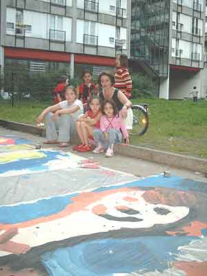 Jugendlichen aus dem Pallasseum unter der Anleitung der bildenden Künstlerin Eva Marie