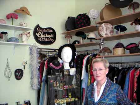 Geschäftsjubiläum. Bei "normalen" Kunden besonders gefragt sind im Moment Modeschmuck aus den 50er Jahren und originale Gebrauchsgegenstände, z.B. Lampen, Vasen oder Kaffeekannen. Aktuelles Prunkstück im Angebot ist ein schwarzes Modellkleid von Heinz Oestergaard, einem der einflussreichsten Modedesigner der Nachkriegszeit. Aufgespürt hat Gabriele Stache diesen Fund in einer unspektakulären Kleiderkiste auf einem Flohmarkt. Überhaupt findet sie auf den Berliner Flohmärkten die meisten Stücke ihrer Sammlung, aber auch bei Wohnungsauflösungen, Auktionen oder ebay stöbert sie erfolgreich. Für die gelernte Krankenschwester, die halbtags in der Altenpflege arbeitet, bedeutet das Geschäft Spannung und Entspannung zugleich. Bevor sie ihr Geschäft eröffnete, sammelte sie bereits privat schöne alte Dinge, das führte natürlich irgendwann zu einem Platzproblem. Sie selbst sieht in ihrer Leidenschaft eine Art Rettung schöner Sachen aus vergangenen Zeiten und möchte ihnen in ihrem Geschäft ein Gnadenbrot oder aber eine neue Chance bieten. Firlefanz Rita Maikowski . |