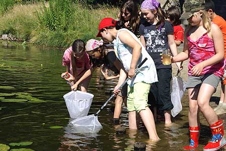 Die Lindenhof-Grundschule ist eine kleine, zweizügige Schule und befindet sich in der verkehrsberuhigten, grünen Genossenschaftssiedlung Gartenstadt Lindenhof in der Nähe des S-Bahnhofes Priesterweg. Gerade die Übersichtlichkeit einer kleinen Schule mache es einfacher, neue Ideen aufzugreifen und auszuprobieren, erklärt die Schulleiterin Frau Dr. Keppeler-Schrimpf das Konzept der Lindenhof-Grundschule. Sie betont, dass die gute Zusammenarbeit zwischen Schülern, Lehrern und Eltern viele Veränderungen ermöglicht habe. Was macht die Lindenhof-Grundschule nun anders oder besonders im Vergleich zu anderen Berliner Grundschulen? Es sind vor allem die Projekte, die in Kooperation mit externen Fachleuten entstanden sind, die der Schule ein besonderes Profil verleihen. Zum Beispiel die Zusammenarbeit mit der Hochschule für Musik Hanns Eisler. Die Umstrukturierung der Studiengänge erforderte es, den Studierenden vermehrt praxisbezogene Methoden wie die (kindgerechte) Präsentation klassischer Musik nahe zu bringen. Beide Seiten hätten deshalb von der Zusammenarbeit profitiert, meint Prof. Mainka, Prorektor der Hochschule: die Studierenden konnten ihre pädagogischen und kommunikativen Fähigkeiten erweitern, die Schüler der Lindenhof-Grundschule bekamen einen ersten Zugang zur Musik, konnten Musikinstrumente ausprobieren und erhielten teilweise bereits Probeunterricht durch die Musikstudenten Die Zusammenarbeit mit Wissenschaftlern der TU Berlin soll der Begeisterung von Schülerinnen für die Naturwissenschaften dienen. Bereits jüngste Schülerinnen und Schüler seien mit Eifer dabei, wenn sie mit Experimenten und Analysen vor Ort und im Labor Naturwissenschaft hautnah erlebten, berichtet Prof. Jekel vom Fachbereich Wasserreinhaltung der TU Berlin. So wurden unter Anleitung der TU-Mitarbeiter Gewässerproben aus dem benachbarten Lindenhof-Weiher entnommen und dessen Wassergüte bestimmt. Wichtig für die Grundschüler ist die Erfahrung, dass wissenschaftliches Arbeiten eben nicht "trocken" sein muss, sondern auch Spaß macht. Ebenfalls der Nachwuchsförderung im naturwissenschaftlichen Bereich dient die Zusammenarbeit mit der Rückert-Oberschule. Herr Klietsch, Fachbereichsleiter Naturwissenschaften, unterstreicht die Notwendigkeit, einer frühzeitigen Verzahnung zwischen Grundschule und Oberschule, um den Übergang zu erleichtern. Ab dem kommenden Schuljahr sollen deshalb verschiedene Formen des Unterrichts in Zusammenarbeit zwischen Grundschule und Oberschule stattfinden. Es ist Unterricht für Grundschüler in den Laborräumen der Rückert-Oberschule vorgesehen, darüber hinaus werden Lehrer aus Grund- und Oberschule vermehrt zusammen arbeiten. Seit 2005 engagiert sich auch "Futurum - Kinderkultur und Bildung" am Standort der Lindenhof-Grundschule. Frau Siwek von "Futurum" betont, dass Kinder sich früh für viele Dinge interessieren. Gerade an der Lindenhof-Grundschule lässt sich auch das Umfeld einbeziehen, um verschiedene Naturforscherprojekte z. B. im Schöneberger Südgelände durchzuführen. Themen wie Eiszeit, Insekten oder Wasser werden von den Kindern zusammen mit Naturwissenschaftlerinnen, Lehrerinnen und Erzieherinnen bearbeitet. So kann man den Kindern anschaulich die Anwendungsmöglichkeiten von Wissen nahe bringen. Die Arbeiten werden am Tag der offenen Tür in der Lindenhof-Grundschule am 11. Oktober 2008 (10 - 12 Uhr) präsentiert. Lindenhof-Grundschule, Reglinstr. 29, 12105