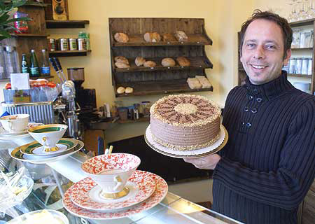 ![]() Frau Behrens Torten Ausverkauft? Am Sonntagnach-mittag um drei? Tatsächlich, das war es offenbar, worauf die Friedenauer Kaffeetafeln noch gewartet hatten: Frau Behrens Torten, die unter einem gewaltigen Kronleuchter in Glasvitrinen präsentiert werden, und zwar gerade auf der Ecke zwischen Rheinstraße und Dickhardtstraße. Nun, eigentlich sind es eher die Torten von Victoria Fernandez, die mit ihrer süßen Manufaktur nun erstmals nicht nur als Lieferantin anspruchsvoller Cafés in ganz Berlin in Erscheinung tritt, sondern ihre Kreationen nun auch im eigenen Laden anbietet. Der Name verdankt sich ihrer ersten, treuesten Mitarbeiterin, von der Rezepte stammen, die Frau Fernandez in ihrer ersten professionellen Backstube unterstützt und auch als Großmutter eine Rolle spielt. In Spanien hatte schon ihr Vater zu einer Konditorenlehre geraten, aber wie die Kinder so sind - sie wollen erstmal ganz andere Wege gehen. Erst in Deutschland, erst durch Zufall kam es zu Aufträgen. „Du backst doch so gut, könntest Du nicht für mein Café - mein Lieferant konnte nicht...“ So fing es an. Die Aufträge häuften sich, und glücklicherweise war Fernandez' Vermieterin tolerant genug, die Backtätigkeit ihrer Mieterin rund um die Uhr nicht nur zu erlauben, sondern sogar zu ermutigen. Die fertigen Kuchen, Tartes und Torten packte Victoria Fernandez dann auf ihr Fahrrad und lieferte von der Dickhardtstraße direkt aus ihrer privaten Küche aus in alle Teile Berlins. Schließlich hatte sie genug Geld beisammen, um nach einer echten Backstube zu suchen, und wurde in der Schmiljanstraße fündig. Vor etwa vier Jahren konnte ich selbst einen Blick in diese Räume werfen. Damals dachte ich, das sei ja wirklich ganz schön mutig. Nichts in der schmucklosen, zunächst noch etwas provisorischen Backstube ließ erahnen, welche Köstlichkeiten sie verlassen würden. Doch wie sie nun präsentiert werden, die Mangotorte, Mousse au Chocolat-Torte, Apfel-Ingwer- oder Baileystorte, die Walnuss-Honig-Joghurt-Tarte oder die mit Brombeeren und Ricotta, der Käse-Baiser-Kuchen und ach, was es sonst noch anderes gibt an Schokoladen aus aller Welt, auch aus Berlin vom befreundeten Chocolatier, dazu lauter reizende Köstlichkeiten, höchst überflüssig und anziehend, das ist ein Augenschmaus. Herr Neugebauer, selbst Gastronom und ehemaliger Kunde - aus Liebe abgeworben für Frau Behrens Torten - weiß zu allen Produkten eine Geschichte zu erzählen. Das vertreibt die Zeit, während man wartet, denn irgendwie will man dann doch noch dies... und vielleicht noch das... Ach, und Brot haben Sie auch? Ausverkauft... Kein Wunder! Sanna von Zedlitz . |