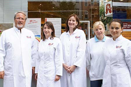 ![]() v.l.n.r.: Hans-Ulrich Fredrich, Anna Fredrich, Andrea Metz, Monika Krautzschick und Sebnem Ahishali. Foto: Thomas Protz Kittelwechsel in der Rheinstrasse Pünktlich zum 35-jährigen Jubiläum wechselt der weiße Kittel vom Vater zur Tochter. Am 1. Juli 2OO9 übergab Hans-Ulrich Fredrich Kittel und Schlüssel an seine Tochter Anna Fredrich. Damit bleibt die 1974 von der Familie Fredrich in der Rheinstrasse 63 gegründete Apotheke ein treuer und kompetenter Ansprechpartner für die inzwischen zahlreiche und „bunt wie das Leben“ gemischte Kundschaft. Natürlich wird diese Kittelübergabe gebührend gefeiert. Wo an diesem Tag bunte Luftballons hängen und ein leuchtendes rotes A über dem von Kindern ausgestatteten Schaufenster zu sehen ist, sind Sie richtig. Einen roten Teppich soll es auch geben. Zum Jubiläum fragte die Stadtteilzeitung nach: Was hat Sie zu dem Entschluss bewogen, dem Rheinstraßenkiez die Treue zu halten? Anna Friedrich (A.F.): Schon als Kind war ich gerne hier im Friedenauer Kiez und habe über all` die Jahre meine Eltern bei ihrer Arbeit in der Apotheke beobachtet. Somit kennen mich unsere Stammkunden bereits seit über 30 Jahren. Auch konnte mich die Arbeit in anderen Apotheken nicht von einem Standortwechsel überzeugen. Welche besonderen Angebote können Ihre Kunden erwarten? A.F.: Neben unserem breit gefächerten Sortiment bieten wir mit unserem kompetenten Team eine umfassende Beratung rund um die Gesundheit, ständig wechselnde Aktionsangebote und eine pharmazeutische Sprechstunde. Sie legen viel Wert auf Teamarbeit, Frau Fredrich. Wen finden die Kunden außer Ihnen noch in der Apotheke? A.F.: Erstmal werden Sie natürlich weiter meinen Eltern begegnen, die mich auch in den nächsten Jahren unterstützen. Bereits seit über 15 Jahren arbeitet Sebnem Ahishali hier. Sie hat schon ihre Ausbildung als Pharmazeutisch Kaufmännische Angestellte unter den Fittichen meines Vaters gemacht. Sie ist eine kompetente Unterstützung in Kosmetikfragen und hilft bei der Beratung in türkischer Sprache. Andrea Metz ist Pharmazeutisch Technische Assistentin und wohnt seit ihrer Kindheit im Kiez. Schon ihre Mutter war ab 1974 ein wichtiges Team-mitglied. Heute stellt ihre Tochter Andrea mit der gleichen Gewissenhaftigkeit individuelle Rezepturen her und hat für alle Anliegen ihrer Kunden ein offenes Ohr. In einem Schaufenster sind oft Dekorationen aus Kinderhand zu sehen. Welche Bedeutung verbirgt sich dahinter? A.F.: Hier hat sich in den letzten 10 Jahren ein Kiezprojekt manifestiert. Kinder aus dem Friedenauer Kindergarten der Heilsarmee basteln in regelmäßigen Abständen tolle Kunstwerke, für die wir unser Schaufenster immer gern zur Verfügung stellen. Wie sehen Sie Ihre Zukunft im Kiez für die kommenden Jahre, auch angesichts der Veränderungen im Apothekengeschäft (z.B. durch die Konkurrenz der Internetapotheken)? A.F.: Es wird sicherlich nicht leichter. Neue Aktionen und Ideen sind gefragt, um unsere Kunden nicht zu verlieren. Hier können wir unsere Stärken zeigen, nämlich die persönliche und auf den Kunden ausgerichtete Beratung. Das wird auch in Zukunft so bleiben. Können Ihre Kunden beim „Kittelwechsel“ Überraschungen erwarten? A.F.: Vom 1. Juli bis 10. Juli des Jahres wird es eine Reihe von Aktionen zum Thema „Gesundheit“ geben. Und passend zur Reisezeit führen wir auch kostenlose reisemedizinische Beratungen durch. Bei allen Beratungen werden auch die Kleinsten nicht vergessen. Unser komplettes Programm finden Sie in entsprechenden Broschüren in unserer Apotheke und auch im Internet unter www.lauterapotheke.de Das Gespräch führte Hartmut Ulrich. . |