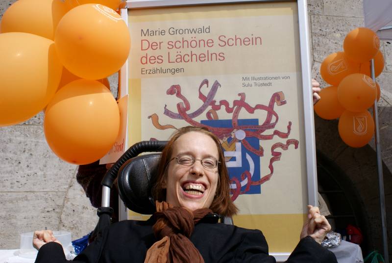 ![]() Der schöne Schein des Lächelns Wie sehr ist man versucht, ein künstlerisches Werk nach dem Wesen seines Schöpfers zu beurteilen! Doch schon Goethe war der Auffassung, Kunst müsse sich selbst erklären, und wer wollte ihm widersprechen. Das Buch, das nun rezensiert werden soll, muss also ganz allein bestehen. Da liegt es also und erinnert in Format und Farbgebung ein wenig an ein Kinderbuch: quadratisch und biegsam. Erzählungen werden versprochen. Ein Blick auf das Inhaltsverzeichnis: Die Texte sind relativ kurz. Trotzdem keine klassischen Kurzgeschichten? Nein, und schon die erste Seite klärt mich auf: Marie Gronwald erzählt aus ihrem Leben. Das kann nur jemand, der auch was zu erzählen hat, der schon einen ordentlichen Schluck aus dem Kelch des Lebens genommen hat. Wird es mich denn fesseln? Ein Blick auf die Vita: Die Autorin wird gerade mal 27 Jahre alt. Was soll da denn schon zusammengekommen sein? Da ist wohl nicht das Was entscheidend, sondern das Wie. Jeder hat schon erstaunliche Erlebnisse gehabt und kopfschüttelnd davon erzählt, vielleicht mit der Bemerkung: "Das sollte man wirklich mal aufschreiben…". Aber seine Erlebnisse auch so darzustellen, dass man sich hineingezogen fühlt in die Situation, aus den Augen des Autors, der Autorin blickt, Gänsehaut bekommt, aufsteigende Tränen herunterschluckt oder sich mitfreut, das ist bei weitem nicht jedem gegeben. Amerikanische Autoren der besagten klassischen Short Stories gaben ihren jüngeren Kollegen häufig den Rat, auf all das schmückende Beiwerk zu verzichten, all die glitzernden Adjektive und Adverbien, die den Blick auf das Wesentliche im Grunde nur trüben. So arbeitet auch Marie Gronwald. Es gäbe sicher viel, sehr viel, womit sie ihre kargen Sätze noch auffüllen könnte, aber was sie schreibt, ist genug, übergenug, um an ihrer Seite durch die Stadt zu fahren. Ja, zu fahren. ![]() Illustration von Sulu Trüstedt Noch ein Blick auf das Cover: Da sitzt ein junges Mädchen inmitten von Spruchbändern, die sie einzuwickeln drohen, und hält sie vorsichtig auf Distanz. Und sie sitzt auf dem Piktogramm für Behinderung: auf dem weißen Rollstuhl auf blauem Grund. Diese Kombination ist umwerfend gewählt von der Friedenauer Illustratorin Sulu Trüstedt, kongenial in der Tat mit den Erzählungen von Marie Gronwald. Was hat ein Piktogramm schon mit dem Menschen zu tun? Was hat die Körperbehinderung mit Marie Gronwald zu tun? Ja, sie hat eine starke spastische Lähmung des ganzen Körpers, weshalb sie ihr Leben lang auf die Unterstützung durch Assistenten angewiesen war und sein wird. Und? Hindert sie das am Denken? Am Fühlen? Am Erleben? Am Artikulieren oder am Studium? Nein. Also erzählt sie zum Beispiel aus dem Urlaub, wo ein wildfremdes Ehepaar versuchte, sie gesundzubeten, so intensiv, dass es der damals Achtjährigen angst und bange wurde. Doch ansonsten: "Es war merkwürdig und spannend für mich in diesem fremden Land, denn ich war es als Achtjährige noch nicht gewöhnt, so angestarrt zu werden." Man liest und fiebert mit ihr mit - wie wird es ihr als der Neuen in der Klasse gehen? Wird das Wetter bei der Klassenfahrt endlich besser? Und dann die Liebe, ach!, die Liebe… Oder auch: Sticht die Mücke, oder sticht sie nicht? Und gelegentlich ärgert man sich über die Tumbheit, die Respektlosigkeit mancher Menschen, denen Marie Gronwald begegnet - bevor man sich wieder irgendwie ertappt fühlt, verflixt. Was tut sie eigentlich, wenn sie sich ärgert? Sie atmet. Tief atmen, und immer weiter atmen. Leben eben. Eigentlich kommen diese Erzählungen ganz gut allein zurecht. Aber fraglos bekommen sie durch die Illustrationen von Sulu Trüstedt eine weitere Dimension, die den einen oder anderen unausgesprochenen Aspekt in heitere Bilder fasst, welche aber ihrerseits ebenso hintergründig sind wie die Texte selbst: Auch sie sprechen für sich, nicht nur für Marie Gronwald. Goethe wäre sehr zufrieden. Am 9. Mai zum "Tag der Menschen mit Behinderung" ist das Buch von Marie Gronwald auf dem Breslauer Platz am Stand des Westkreuz-Verlags zu erwerben - verbunden mit einer Signierstunde der Autorin von 11-13 Uhr. Sanna von Zedlitz ![]() Marie Gronwald "Der schöne Schein des Lächelns" ISBN 978-3-939721-10-9 Westkreuz-Verlag, 14,95 Euro Homepage von Marie Gromwald | Homepage von Sulu Trüstedt Mai 2009 Stadtteilzeitung < Inhaltsverzeichnis |