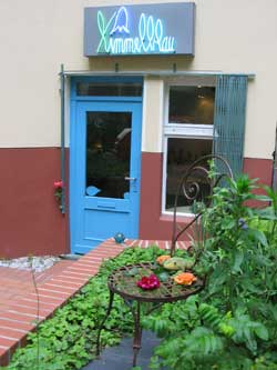 ![]() Umrankt von Efeu, etwas zurückgesetzt und ganz verwunschen wirkt Mona Hahnes Blumenladen im Souterrain. Ihr Laden soll vom Kunden entdeckt werden, denn nur Aufmerksamkeit und Neugierde führen ins Ladeninnere. „Auf diese Weise kommen die richtigen Kunden, nämlich die, die auch Sinn für meinen Stil haben“, meint die Inhaberin. Wenn ihr Laden geöffnet ist, steht ein Eisenstuhl im Vorgarten - aber nur die Stammkunden wissen das. Der Name „Himmelblau“ soll den Kunden positiv einstimmen, denn mit der Farbe Blau assoziieren viele einen Sommerhimmel, das Meer und gar die blaue Blume der Romantik. Im Innenbereich setzt sich das Verspielte und Verwunschene des Außenbereichs fort. Die Einrichtung erinnert an Gaudi oder Hundertwasser, die Farbe der Wände an Botticelli. Dekorativ stehen die Vasen in verschiedenen Größen und Formen im Raum. Ins Auge fällt jedoch der Murmeltisch - die Ladentheke -. Hier liegen viele bunte Murmeln aneinander und laden zum Spielen ein. Die Murmeln sind lose und können beliebig verändert werden. Ob Groß oder Klein, laut Frau Hahne kann kaum ein Kunde den Murmeln widerstehen! So wird z.B. das Warten leichter überbrückt oder die Kinder werden beschäftigt ... jedoch spiegelt dieser Tisch auch den Stil von Mona Hahnes Laden wider. Poetische Floristik - was bedeutet das? Zur Erklärung vergleicht Frau Hahne einen Blumenstrauß mit einem Gedicht. Es gibt kurze und lange Gedichte, jedes Wort hat seine Bedeutung und auch mit wenig Worten kann ein Gedicht wirken. Genauso verhält es sich mit den Blumen - ein Strauß enthält viel oder wenig einzelne Blumen. Jedoch wirkt jede Blume für sich und der Strauß wirkt als Ganzes. Frau Hahne hat ein kleines Sortiment, jede Woche ca. 7 verschiedene Blumenarten, die immer kombinierbar sind. Die Blumen werden in schönen Vasen und Gläsern präsentiert, denn die Wirkung im Zusammenspiel mit der Vase ist auch wichtig. Da jede Blume ihren eigenen Reiz hat, ist es möglich, bei „Himmelblau“ auch nur ein oder zwei Blumen zu kaufen, ohne komisch angeschaut zu werden. Manche Kunden machen das regelmäßig, denn z.B. ein Blümchen neben dem Computer verschönert gleich die Wohnatmosphäre. Und genau dies ist das Anliegen der Besitzerin: Blumen stärker in den Alltag zu bringen. Andere Kunden bringen ihre Vase mit und gemeinsam wird eine passende Blume oder ein Strauß ausgesucht. Für Mona Hahne ist der Blumenladen nur ein Standbein. Ihr anderer Beruf ist Tangotänzerin und Tangolehrerin. Von Haus aus studierte sie Kunstgeschichte, Literaturwissenschaft und Psychologie. Tanzen und Blumen waren aber schon immer ihre große Leidenschaft. Ihre Floristikkenntnisse hat sie sich im Lauf der Zeit selbst angeeignet, angefangen als Kind mit dem Binden von Kränzen. Und nicht zuletzt hat auch die Kunstgeschichte ihren Sinn für Dekoratives vertieft. 2001 hat Mona Hahne dann ihren langgehegten Traum verwirklicht und den Laden in der Markelstraße 13 eröffnet. „Himmelblau“ liefert auch Raumdekorationen für Läden, Praxen oder Feiern. Besonders gern stattet Mona Hahne Hochzeiten aus. Immer stehen jedoch guter Geschmack und eine individuelle Note im Vordergrund. „Himmelblau“ ist Donnerstag, Freitag und Samstag von 12 - 18 Uhr geöffnet. Bestellungen sind jederzeit möglich. Himmelblau Markelstr. 13, 12163 Berlin (Nähe Schloßstr.), Tel. 20291965 www.himmelblau.de Christine Sugg
