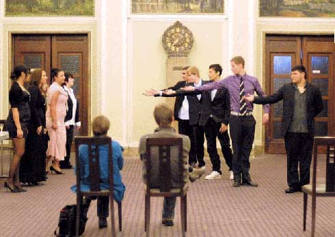 ![]() Ausgebucht Bis auf den letzten Platz war der Brandenburgsaal im Rathaus Schöneberg zur Premiere des JobAct®-Stückes “Abschlussball” gefüllt - ein sehr gelungener und würdiger Rahmen für die Präsentation des Theaterstückes, das ausbildungssuchende Jugendliche und junge Erwachsene gemeinsam mit Theaterpädagogen im Rahmen eines Berufsqualifizierungsangebotes von der Idee bis zur Premiere entwickelten. Viel Raum nahmen in diesem Stück die individuellen Stärken der Jugendlichen ein. Fußballakrobatik, Musik und Tanzen spielten dabei eine große Rolle. Das Publikum war von der Bühnenpräsenz der Spieler/innen besonders in der 2. Vorstellung begeistert. JobAct® wurde vom Nachbarschaftsheim Schöneberg in Kooperation mit der Projektfabrik e.V. nun zum dritten mal durchgeführt. Job Act® in Berlin Schöneberg wird finanziert vom Jobcenter Tempelhof-Schöneberg. Weitere Informationen im Internet unter http://www.projektfabrik.org/ . |