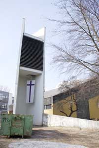 Merkwürdige Ablufttürme – Aprilscherz, oder was? Nanu, mag man da denken, sind hier unterirdische Parkplätze mit „überdimensionalen Ablufttürmen“ entstanden? Mitnichten ! Es sind die Glocken-türme dreier Schöneberger Kirchen, die in den 60er Jahren in einer Zeit knapper Kassen, aber neu-er städtebaulicher Ideen zur Integration von Sakralbauten in ein neues Stadtbild erbaut wurden. Die Kirchenbauten waren damals in ihrer Form und mit ihren Türmen in der Bevölkerung nicht unumstritten, aber niemals so angefeindet worden wie ihr großes Vorbild in der City, die Kaiser- Wilhelm-Gedächtniskirche, und sie haben inzwischen Anerkennung und ihren Platz im Kiez gefunden. Auch wenn ihr äußeres Erscheinungsbild etwas gewöhnungsbedürftig ist (aber derartige Beispiele gibt es auch an anderen Orten und in verschiedenen Stilepochen im Kiez), so lohnt es sich doch einmal, nach diesen „akustischen Ablufttürmen“ zu suchen und das sie umgebende Kirchenensemble in Ruhe und – nachdenklich – auf sich wirken zu lassen. Vielleicht ist man danach auch in der richtigen Stimmung, mehr über den Namen der Kirchen und ihre Entstehungsgeschichte herauszufinden. Viel Spaß und Erfolg wünscht dabei Hartmut Ulrich . |