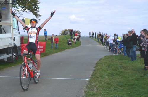 ![]() Tim Reske siegt in Hildesheim Foto: Privat 100 Jahre Iduna Lange bevor es eine Versicherung mit dem Namen Iduna gab, gründete sich ein Fahrradverein und gab sich den Namen Schöneberger R.V. Iduna (nach der nordische Göttin der ewigen Jugend). In einer Festschrift mit vielen Grußworten, angefangen mit Klaus Wowereit bis hin zum Präsidenten des Bundes Deutscher Radfahrer Rudolf Scharping - wer kennt nicht die Bilder: unser Minister mit seinem Freund Jan Ullrich bei der Tour de France - wurde gratuliert. Die Festschrift gibt einen Rückblick über die 100 Jahre Vereinsgeschichte, die ein Spiegelbild der jeweiligen politischen Zeit ist, zeigt aber auch, wie sich das Fahrrad in den 100 Jahren entwickelt hat. Heute als Autohersteller bekannte Firmen entwickelten und produzierten die ersten Fahrräder in Deutschland. Noch heute kann man NSU oder Audi-Räder entdecken. Ein Jahr nach der Gründung veranstaltete der R.V. Iduna ein Radrennen über 100 km. 29 Starter beteiligten sich. Wie viele ans Ziel gelangten, ist nicht überliefert. Die Rennmaschinen hatten damals eine Feder-Bereifung. Rahmen, Sattel und Lenker hatten schon Ähnlichkeit mit heutigen Rädern. Der erste Weltkrieg brachte das Vereinsleben zum Erliegen. Viele Aktive kamen erst nach und nach aus der Gefangenschaft zurück. Politische Unruhen in Berlin erschwerten das Vereinsleben. Zudem gab es kaum Reifen, und wenn, waren diese nicht renntauglich. Dieser Umstand bewegte die Mitglieder des Vereins, nach Alternativen zum Radsport zu suchen. Kegeln wurde geselliges Samstagvergnügen - noch heute gibt es eine Kegelabteilung -, am Sonntag wurde getanzt. Für ein Jahr gab es den Verein nicht mehr, man fusionierte mit R. V. 1888. Diese Fusion wurde ein Jahr später wieder rückgängig gemacht. Von 1921 bis 1930 gab es wieder ein reges Vereinsleben, Räder konnten vom Verein gekauft werden. Wichtiger noch waren die Reifen, die nach den Rennen wieder an den Verein abgegeben werden mussten. 1922 betrug der Mitgliedsbeitrag 7 Mark, die Inflation bewirkte innerhalb von 18 Monaten, dass der Beitrag auf 40.000 Mark rasant anstieg. Nur durch Spenden von Ehemaligen war es noch möglich, das Vereinsleben aufrecht zu erhalten. Turbulente Zeiten für den Verein, doch Rennen wurden immer wieder erfolgreich gefahren, mit Ehrenpreisen für Fahrer des Vereins. Eine Motorradabteilung wurde gegründet, so blieben ehemalige Rennfahrer im Verein gebunden. Die Motorisierung schritt rasant fort. Ab 1931 und mehr noch ab 1933, erst schleichend, machten sich die politischen Umwälzungen bemerkbar. Obwohl ein deutlicher Mitgliederzuwachs und viele sportliche Erfolge zu verzeichnen waren und vor allem eine starke und sehr erfolgreiche Jugendabteilung Bestandteil des Vereins wurde, muss man das Vereinsklima als kühl beschreiben. Rennfahrer wurden aufgefordert, zu Hitlers Reden aufzumarschieren, der Vorsitzende war nun der Vereinsführer, und aus dem Radfahrergruß wurde Heil Hitler und es gab Kameradschaftsabende. Alle Jugendfahrer gehörten automatisch zur Hitlerjugend. Viele Protokolle gibt es nicht aus den Jahren 1934 bis 1939. Der zweite Weltkrieg war eine neuerliche Zäsur: 40 Mitglieder wurden Soldaten, erste waren gefallen. Ungeachtet dessen gab es immer wieder Rennen. Noch funktionierte das Leben in Deutschland, doch das Vereinsleben wurde immer schwieriger. 1949 wurden wieder Sportvereine zugelassen. Mit bescheidenen Mitteln konnte R.V. Iduna an Rennen teilnehmen. Das Interesse am Radsport stieg rasant, sogar eigene Vereinsmeisterschaften wurden ausgetragen: Kolonnenstraße – Naumannstraße - Cheruskerstraße – Torgauer Straße, das war die Rennstrecke. Fernfahrten gingen nach Leipzig und Cottbus. 1955 erlahmte das Interesse, besonders das der Jugendlichen, am Radrennsport. Das 50. Jubiläum feierte der Verein 1960. Nach dem Bau der Mauer 1961 fuhren Radsportler zu Rennen nach Westdeutschland, trotz etlicher Schikanen an der Grenze. 1985 konnte endlich ein eigenes Vereinsheim, rechtzeitig zum 75. Jubiläum, bezogen werden. Viele rauschende Feste wurden dort gefeiert. In dieser Zeit ging es zum ersten Mal auf eine weite Reise nach Vilnius in Litauen - ohne großen sportlichen Erfolg. Die herzlichen menschlichen Begegnungen jedoch waren eine nachhaltige Erfahrung. Der Fall der Mauer ermöglichte es, wieder ins Umland zu fahren. Partnerschaften, so mit einem Radclub BRC Semper 1925 aus Ost-Berlin, wurden eingegangen. Nicht mehr allein die Rennfahrer bestimmten das Vereinsleben, sondern der Breitensport. Rad-touren-Fahrten wurden immer beliebter. Erst 2003 erfuhr ich, dass es den Verein in Schöneberg gibt. Einen benachbarten Jungen, zehn Jahre alt, sah ich im Rennfahrertrikot. Es war die Zeit der Erfolge von Jan Ulrich bei der Tour de France. Ich dachte, es sei ein Fantrikot. „Nein“, sagte stolz der Vater, „Tim fährt Radrennen, ich fahre ihn überall hin.“ Es stellten sich schnell Erfolge ein. Nicht gleich die ersten Plätze, doch in der Spitzengruppe landete Tim Reske immer öfter. Nun ist er seit etlichen Jahren das Aushängeschild der Iduna. Auf der Straße ebenso wie auf der Bahn errang er viele Erfolge. Zuerst der Berliner Radverband, und nun seit ein paar Jahren der Deutsche Radverband, nahmen ihn in den Kader auf. Das bedeutet, Schule mit dem Sport gut zu verbinden. Tim besucht die 11. Klasse in der Paul-Natorp-Oberschule. Auch auf seine Gesundheit muss er sorgsam achten. Die Unterstützung der Eltern hat Tim im hohen Maß. 2008 zeigte mir der Vater stolz einen Carbon-Rahmen, das tollste Material für ein Rennrad. Prompt wurden viele Siege eingefahren, ja, Tim wurde im Mannschaftsfahren Deutscher Meister. Sein Ziel ist es heute, das Abitur zu schaffen und im gleichen Jahr bei der Olympiade in London an den Start zu gehen, wenn möglich mit seiner Freundin, die auch Deutsche Meisterin ist. Das Jubiläum des Vereins im Rathaus Schöneberg war eine würdige Veranstaltung. Viele Gäste konnten 100 Jahre Iduna sehen und erleben, was 