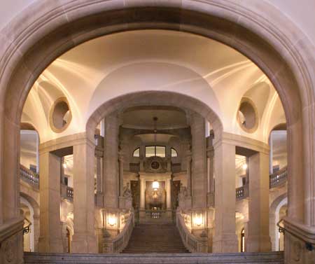 Imposant: Die Eingangshalle des Kammergerichtshofs. Foto: Thomas Protz Lebendige Rechtsgeschichte in Schöneberg Das