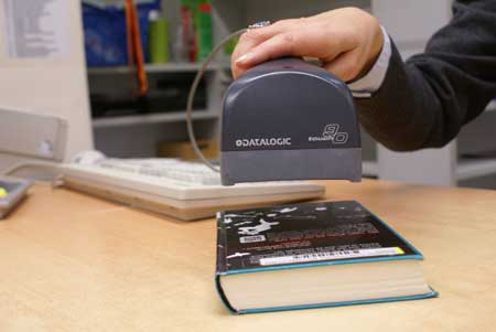 Bücher, CDs und DVDs mit dem Strichcode unter das Lesegerät oder geben