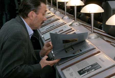 Ausstellungsbesucher liest in einer Biografie. Foto: Thomas Protz