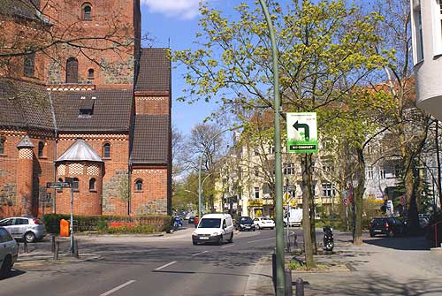 ![]() Die Laubacher Straße an der Marienkirche, hier überqueren täglich viele Schüler die unübersichtliche Straße. Foto: Thomas Protz TEMPO-30-Initiative für den Straßenzug LAUBACHER- MAßMANN- LEPSIUSSTRAßE Morgens, kurz vor acht: Grundschulkinder wagen sich mit kleinen Schritten über die Laubacher Straße. Die größeren Schüler werden mit ihren Fahrrädern manchmal zu gewagten Manövern gezwungen. Sie müssen den Autos ausweichen, die wegen zahlreicher Kurven und der zugeparkten Randstreifen selbst für Erwachsene nur schwer zu sehen sind. Am Bergheimer Platz, wo die Gemeinde der Marienkirche eine Suppenküche unterhält, stehen Bedürftige, oft auch alte und kranke Mitbürger minutenlang, weil dort neben dem Verkehr der Laubacher noch vier Nebenstraßen zu beachten sind. Auch die Autofahrer selbst verlieren den Überblick. Öfter als anderswo wird die Polizei zu Unfällen gerufen. In der dunklen Jahreszeit verschärfen sich die Probleme noch. So ist es kein Wunder, wenn sich Unterschriftenlisten schnell füllen. Die einhellige Meinung der Anwohner ist, dass ihrer Sicherheit Vorrang vor den Interessen des Durchgangsverkehrs zu geben ist. Konsequenterweise sollte die Strecke zwischen Wiesbadener- und Schildhornstraße nur mit Tempo 30 zu befahren sein. Das Anliegen wurde bereits von der BVV-Charlottenburg-Wilmersdorf mit den Stimmen von SPD und GRÜNEN beschlossen, nachdem der Verkehrsausschuss zugestimmt hatte. Kai Lobo, baupolitischer Sprecher der SPD-Fraktion, begleitet das Vorhaben auf der Bezirksebene. Der Wahlkreisabgeordnete Christian Gaebler, parlamentarischer Geschäftsführer und auch verkehrspolitischer Sprecher der SPD-Fraktion, hat seine grundsätzliche Unterstützung auf der Landesebene zugesichert und wird nun tätig werden. Anders sieht die Situation im Bezirk Steglitz-Zehlendorf aus, zu dem die Maßmannstraße gehört, wie die Laubacher Straße im weiteren Verlauf heißt. Dort hatte die Fraktion der GRÜNEN den Antrag gestellt, sich gemeinsam mit dem BA Charlottenburg-Wilmersdorf für den Antrag einzusetzen. Die-ses wurde nach Auskunft von Herrn Lobo jedoch im Verkehrsausschuss mit den Stimmen von CDU und FDP abgelehnt. Ein Tempo-30-Programm auf den Hauptverkehrsstraßen ist auch Teil des „Langfristigen Lärmaktionsplans für Berlin“. Die Senatsverwaltung für Stadtentwicklung in Zusammenarbeit mit der Gesund-heitsverwaltung schreibt darin ihre Maßnahmen zur Lärmminderung in der Stadt fest, um die Nerven der Anwohner zu schonen und gesundheitliche Folgen (Herz-Kreislauf-Erkrankungen) zu vermeiden. Der Anordnung von Tempo-30-Zonen wird dabei eine hohe Bedeutung eingeräumt, weil sie wirksam und schnell umsetzbar ist. Zurzeit hat Berlin auf fast drei Vierteln des Straßennetzes tagsüber Tempobegrenzungen. Bereits im Jahr 2004 hat es einen ähnlichen Antrag der Fraktion die GRÜNEN gegeben, der dann aber im politischen Sand verlaufen ist. Der Straßenzug lag bisher nicht gerade im Fokus der Bezirkspolitik. Geschuldet ist das sicher seiner Lage an der Grenze dreier Bezirke. Es ist zu hoffen, dass diesmal kein Sand in das politische Getriebe gerät und auch die Verkehrslenkung Berlin sich dem Vor-haben nicht verschließen wird. Wolf Weltermann (Wolf.weltermann@web.de) Kay Verleger (RVKay111@aol.com). . |
