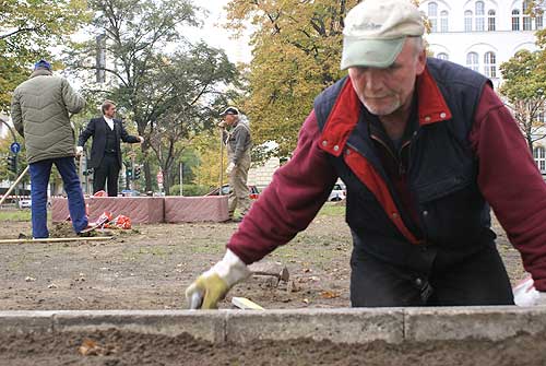 ![]() Foto: Thomas Protz Projekt „schönes Friedenau“ Die Klagen der Mitbürger über den Zustand des Grazer Platzes verfolgen Pfarrer Thomas Lübke schon seit Jahren. „Der Hinweis, dass dies öffentliches Land ist, hat mich davor bewahrt, Schaden zu nehmen.“ meint Lübke leicht ironisch. Dem Netzwerk Zukunftsperspektiven (Verein für soziale Beratung Wendepunkt e.V., Megamix e.V. und der Diakonieladen Rubensstraße 87) ist es nun gelungen, die Genehmigung zur Umgestaltung des Grazer Platzes in eine gepflegte Grünanlage zu erhalten. Ins-gesamt 2.100 Euro sind dafür vom Bezirk zur Verfügung gestellt worden. Es zeigt sich, dass die Summe jedoch nicht ausreichen wird. Der Grazer Platz an der Rubensstraße ist ein Ort, der nicht abseits sondern im Zentrum der Mitbürger steht. Hier fahren die Buslinie 246 (Ost-West-Verbindung) und die Buslinie 187 (Nord-Süd-Verbindung) vorbei. Beide Buslinien haben hier auch ihre Haltestellen. Das Pkw-, Rad-fahrer- und Fußgängeraufkommen ist auch erheblich. Zur benachbarten Sekundarschule müssen viele Schüler am Grazer Platz vorbei laufen. „Wir wollen den Mitbürgern den tristen Anblick auf die Grünfläche nehmen und sie dazu bewegen, sich an den Blumen und an der gepflegten Anlage zu erfreuen. Sind doch diese Momente – leider – in unserem Stadtbild sehr rar geworden. Ich bin fest davon überzeugt, dass dies zur Verbesserung der Lebensqualität dient.“ erklärt Pfarrer Lübke. Geplant ist die Bepflanzung der sieben Pflanzkübel im Herbst mit Tulpen- und Narzissenzwiebeln, im Mai mit Frühlingsblumen, im Juli mit Sommerblumen und im Herbst mit Herbstblumen. Unter den beiden Rasenflächen sind bereits 210 Blumenzwiebeln untergebracht worden. Die restlichen 582 Blumenzwiebeln werden in die Pflanzkübel gesetzt. Die alten Sträucher werden in der nächsten Woche komplett entfernt sein. Dann freut sich Pfarrer Lübke auf die 50 Eiben (80-100cm), die er günstig von der Baumschule Lorberg geliefert bekommt. Die Firma HERFURT wird günstig 16 Tonnen Kies anliefern, die in der Mitte der Anlage, nach altem Vorbild, aufgebracht werden. Wegen geeigneter Bänke und Abfallkörbe wurde Kontakt zum neuen Eigentümer des ehemaligen Notaufnahmelagers Marienfelde aufgenommen. „Die Bundesanstalt für Immobilienaufgaben wird uns hoffentlich eine positive Antwort geben“, meint Lübke. „Dann haben wir sechs „standhafte“ Metallbänke und auch zwei Abfallkörbe!“ Rundum wird sich der verwahrloste Platz mit Hilfe vieler ehrenamtlich tätigen Mitbürger zu einer einladenden Parkanlage entwickeln. Auf dem Platz wird als abschließende Maßnahme dauerhaft ein Schild errichtet, das die Namen der Sponsoren mit Angabe der Homepage trägt. November 2010 Stadtteilzeitung < Inhaltsverzeichnis |